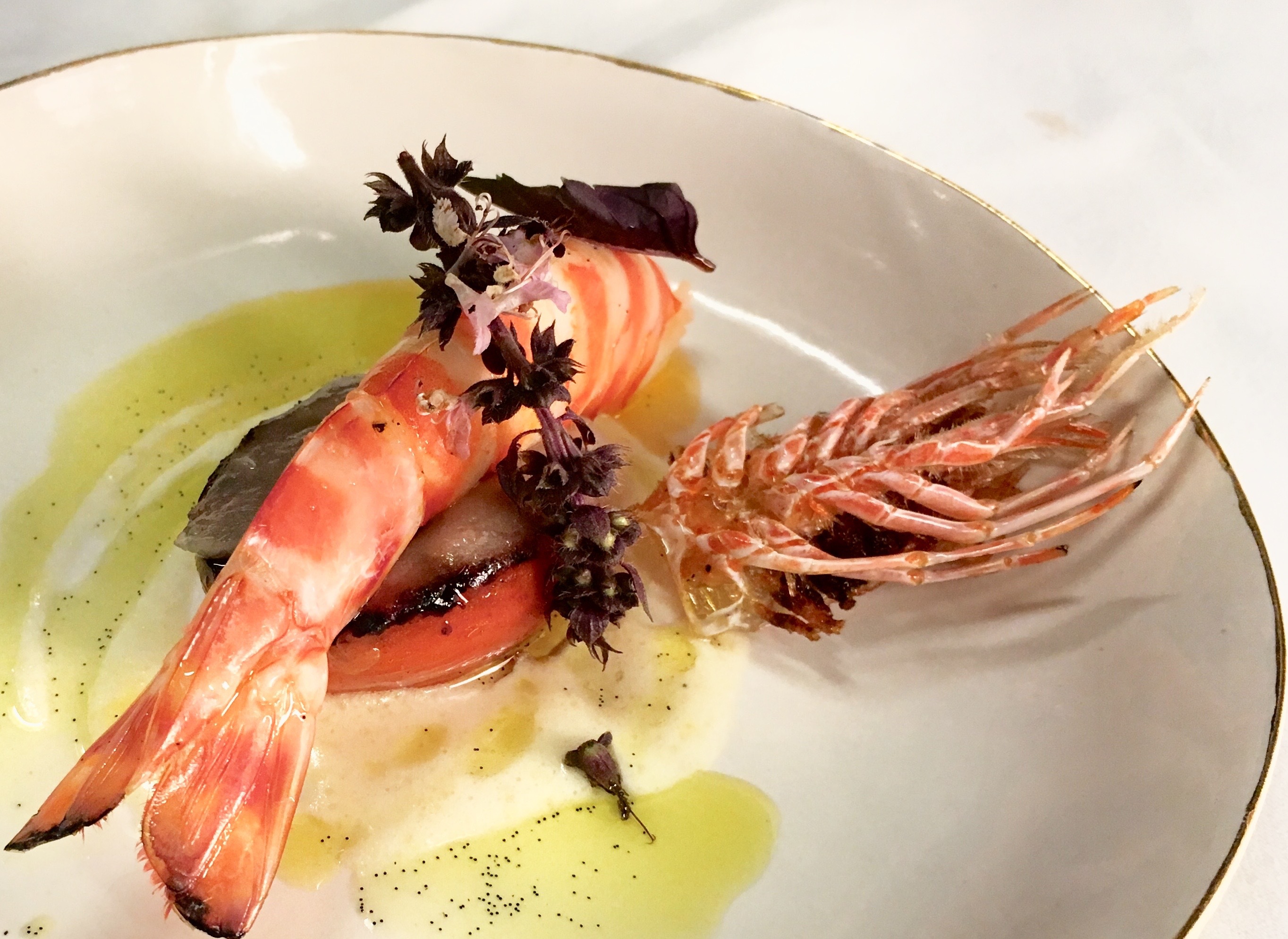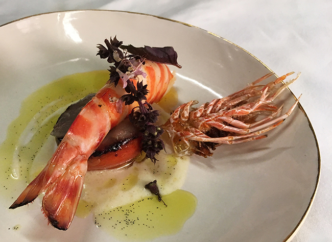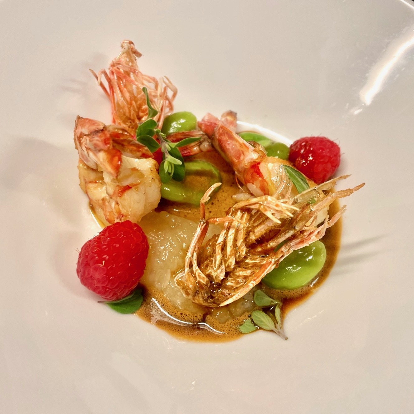 *才巻海老のポワレ バニラとシェリービネガー風味のソース