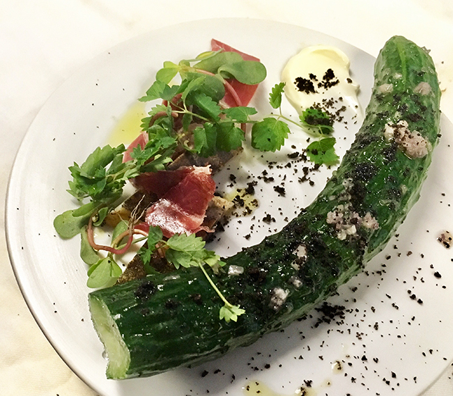 *アジのマリネとイベリコ豚の生ハム 四葉きゅうりのサラダ