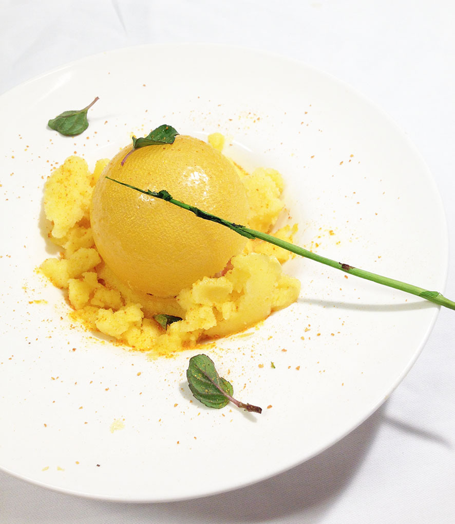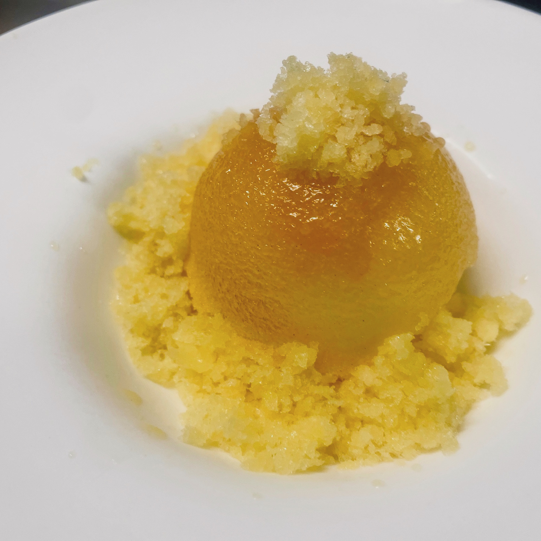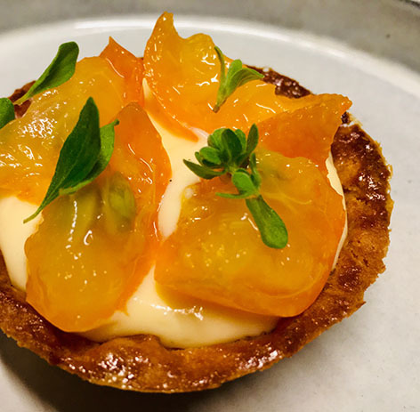 *毛蟹とバターナッツのフォンダン 早生みかんのソース