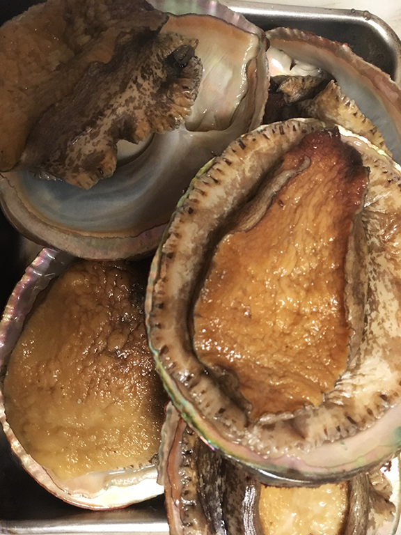 *鮑の海藻パン粉焼き バルサミコ風味の肝のペースト