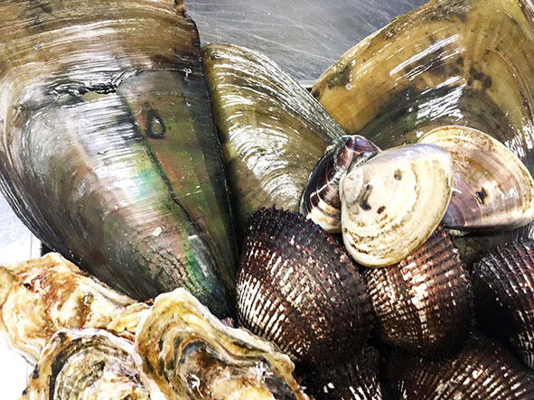 *三陸産牡蠣貝のポワレ 小松菜のソース