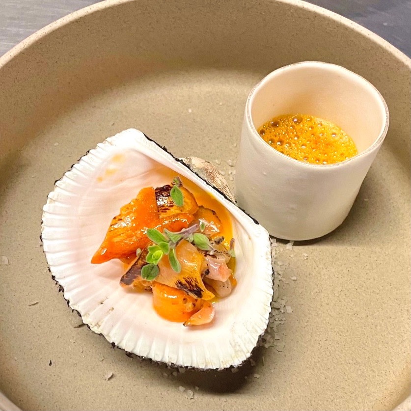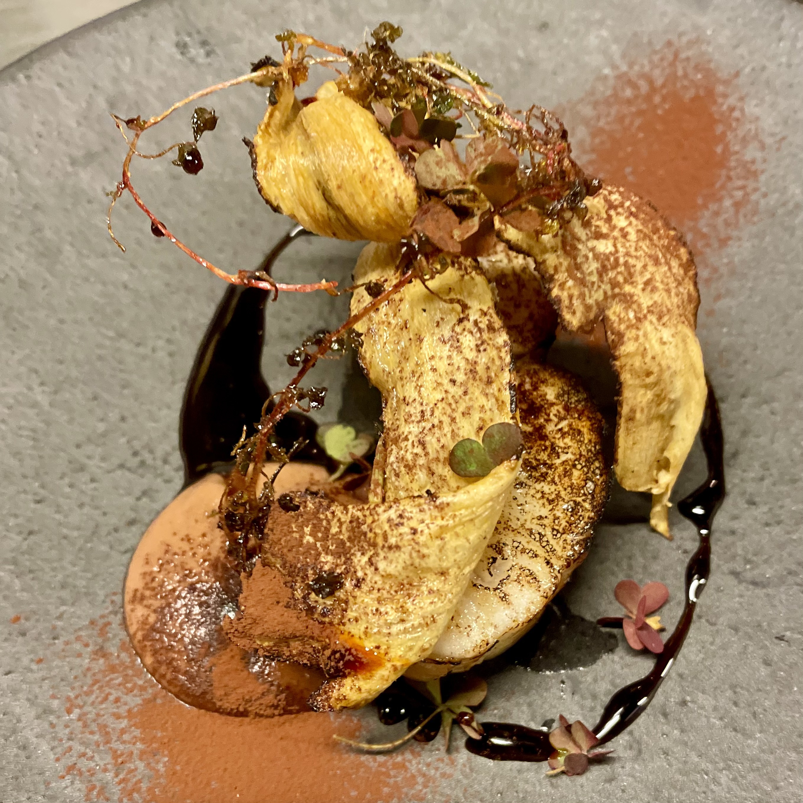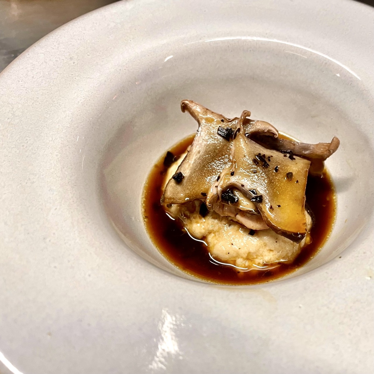 *ホッキ貝のソテー 発酵マッシュルームのブルーテ