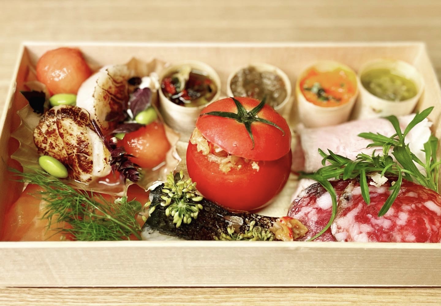 『ウニとトマトのソルベ』の前菜が入ってます。
