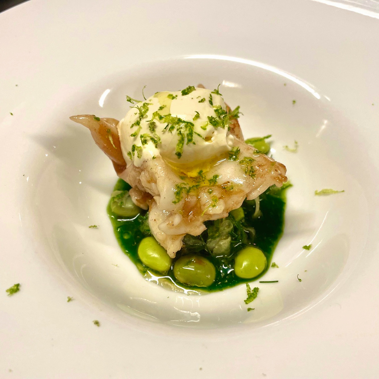 *ホタテ貝のポワレ アボカドのソルベ添え