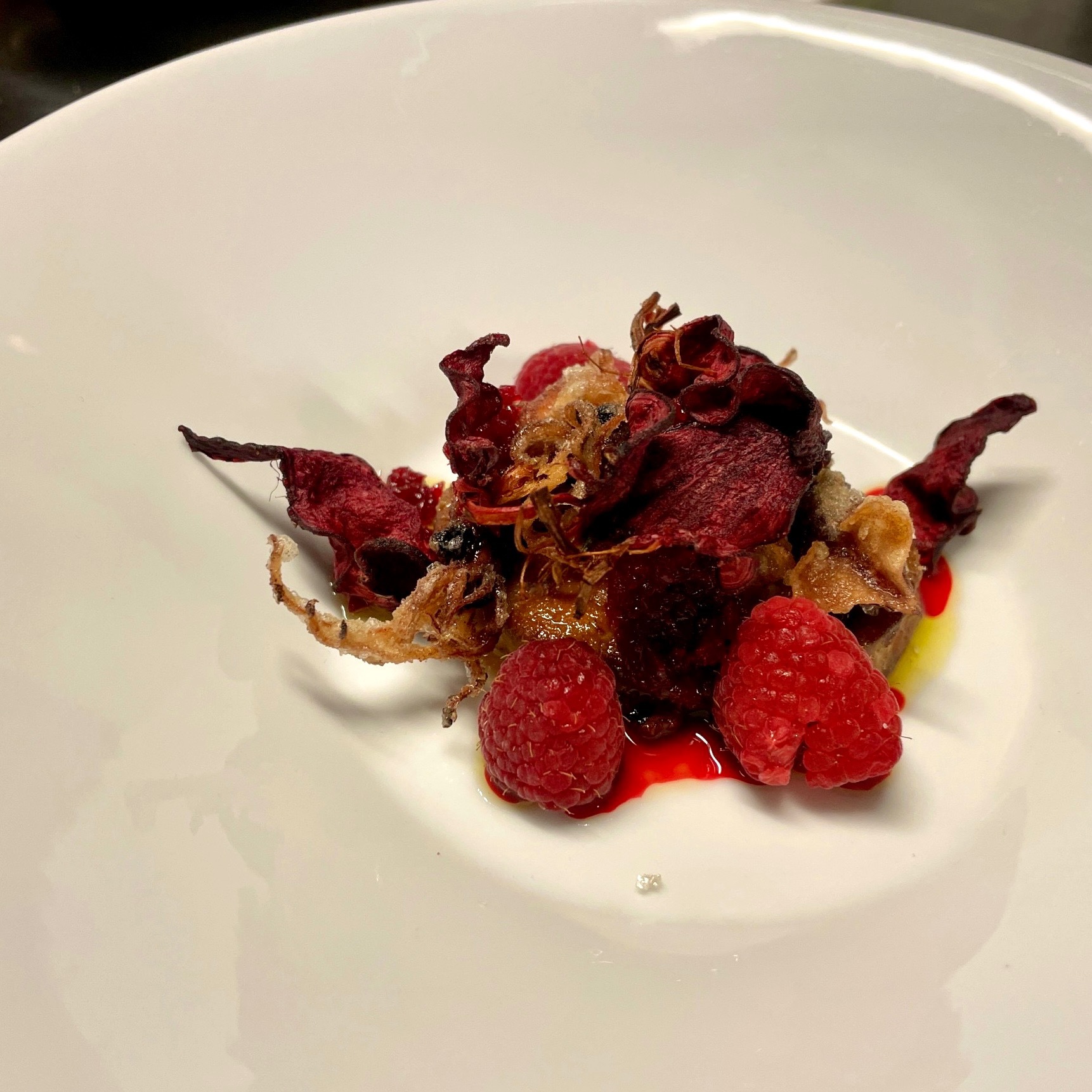 * フォアグラのポワレ リュバーブルのジュと赤カブ